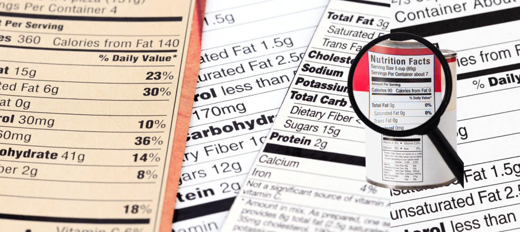 Todo alimento debe incluir una etiqueta nutricional distinta a la lista de ingredientes. Según el RTCA 67.01.60:10, aplicable a productos destinados a personas mayores de tres años, deben declararse como mínimo: valor energético, grasas totales, grasas saturadas, carbohidratos, proteínas y sodio. La información puede expresarse en unidades del Sistema Internacional o como porcentaje del Valor de Referencia Diario, indicando las porciones que contiene el envase.